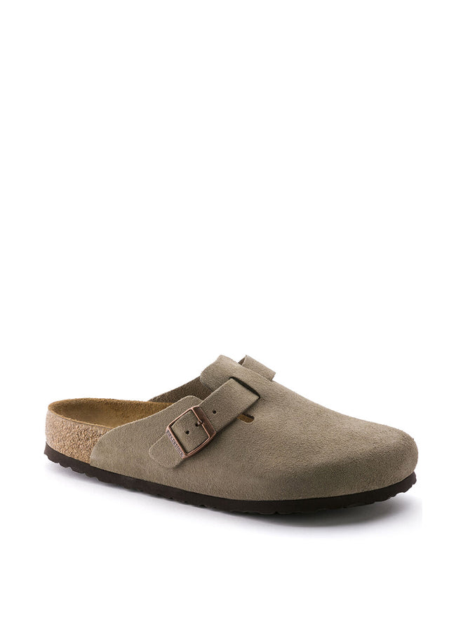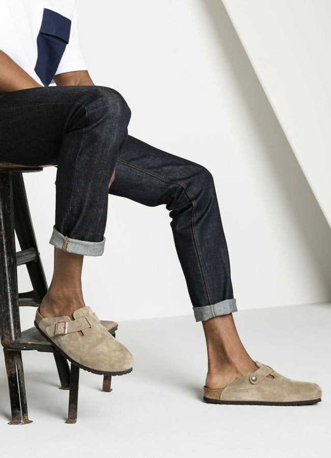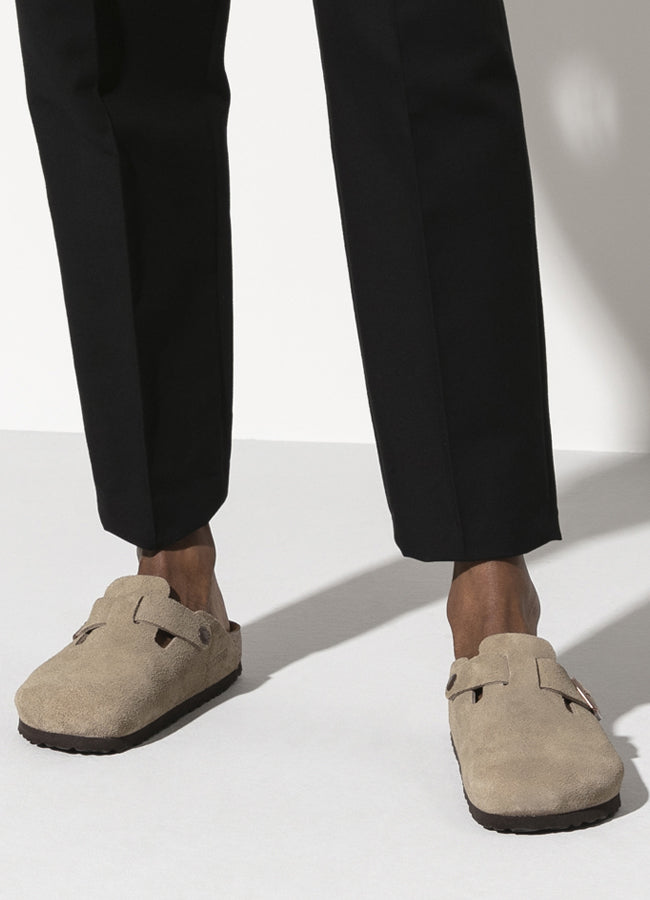 The BIRKENSTOCK Boston clog is a veritable classic that can easily be worn all year round. The color-coordinated buckles with a textile feel and a matte design as well as the color-coordinated outsole are additional eye-catchers. The upper is made from soft suede.