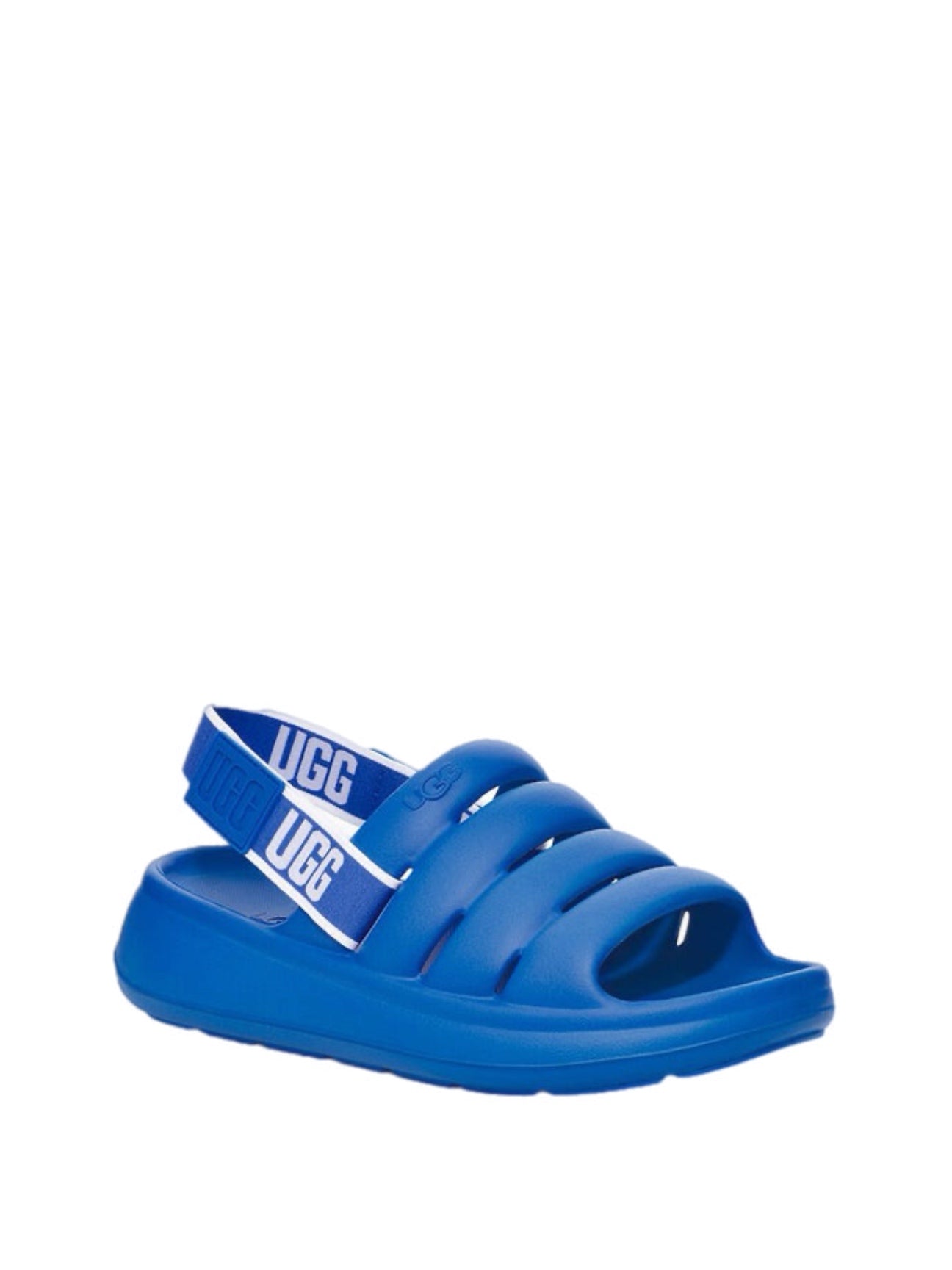 - UGG® webbing, Hook-and-loop closure, Removable heel strap, Adjustable heel strap